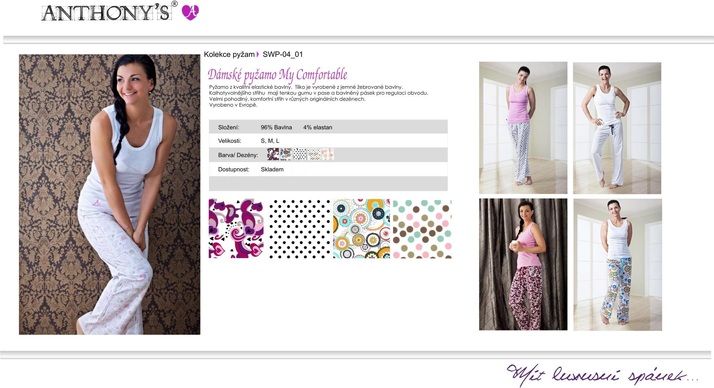 Pyžamo z kvalitní elastické bavlny. Tílko je vyrobené z jemné žebrované bavlny. Kalhoty volnějšího střihu mají tenkou gumu v pase a bavlněný pásek pro regulaci obvodu. Velmi pohodlný, komfortní střih v různých originálních dezénech. Vyrobeno v Evropě.