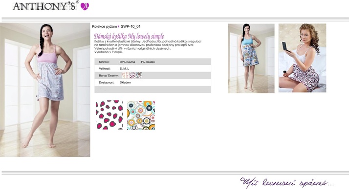 Košilka z kvalitní elastické bavlny. Jednoduchá, pohodlná košilka s regulací na ramínkách a jemnou silikonovou pruženkou pod prsy pro lepší tvar. Velmi pohodlný střih v různých originálních dezénech. Vyrobeno v Evropě.