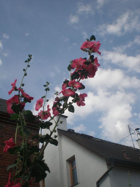 Slezové růže z jednoho semene, původně měly být tmavě nachové až dočerna, jenže....
