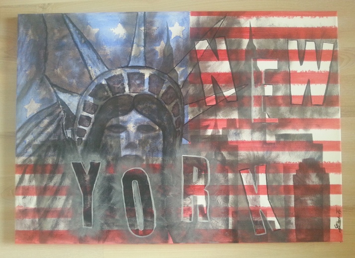 Tento obraz je dárek pro mou dceru k 16 narozeninám. Přála si, abych jí namalovala New York, který je jejím snem.