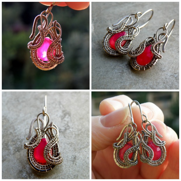 Náušnice s malinovým chalcedonem výrazně růžové barvy. Vyrobeny z nerezového drátu.