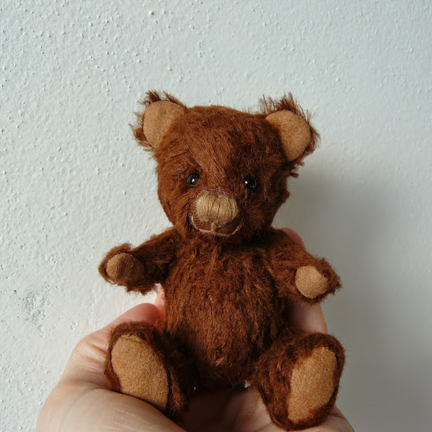 Medvídek má 11 cm. Ušitý pro našeho odborného asistenta, o němž studentky říkají, že je to je takovej roztomilej méďa :)