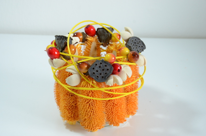 15 bodláků přepulte nejlépe "zubatým" nožem a lepící pistolí připevněte k zavařovací skleničce.