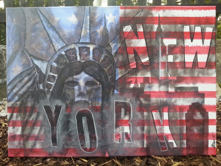 Tento obraz je dárek pro mou dceru k 16 narozeninám. Přála si, abych jí namalovala New York, který je jejím snem.