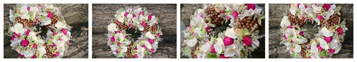 Proutěný věneček s klokočím umělou hortenzií a se staticí.