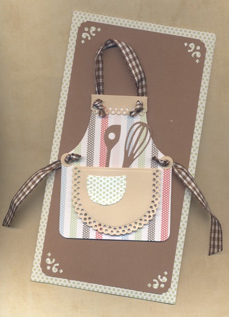 Dárková obálka k 50.narozeninám na poukaz na kurz vaření pro muže. U obálky mělo být skryté věnování a podpis všech, kteří se na dárek složili.
