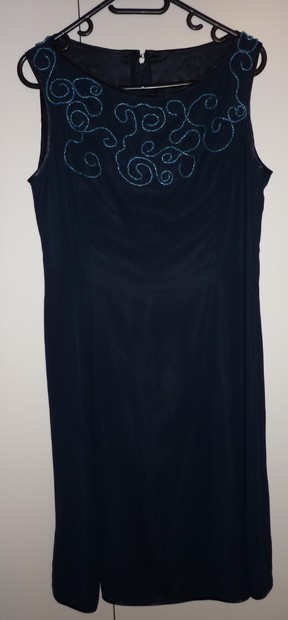 Tmavě modré společenské šaty zdobené korálky vel.38/40