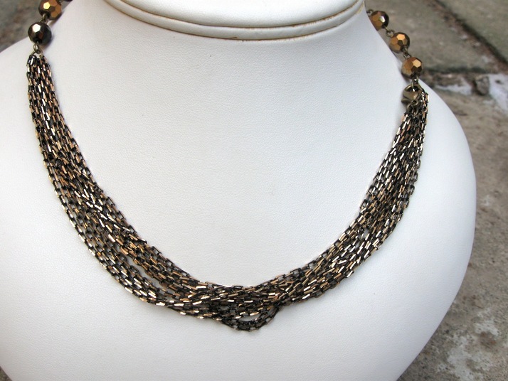 náhrdelník z nádherného broušeného řetězu, medových ohňovek se zlatým pokovem a srdíčkem jako volitelným přívěskem. Dá se nosit jako 8 různých náhrdelníků viz dále