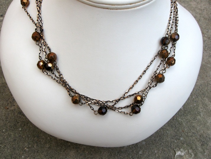 dlouhé lano tvořené krásně broušeným řetězem a medovými ohňovkami se zlatým pokovem. dá se nosit jako dlouhý, krátký - podle nálady avýstřihu :)