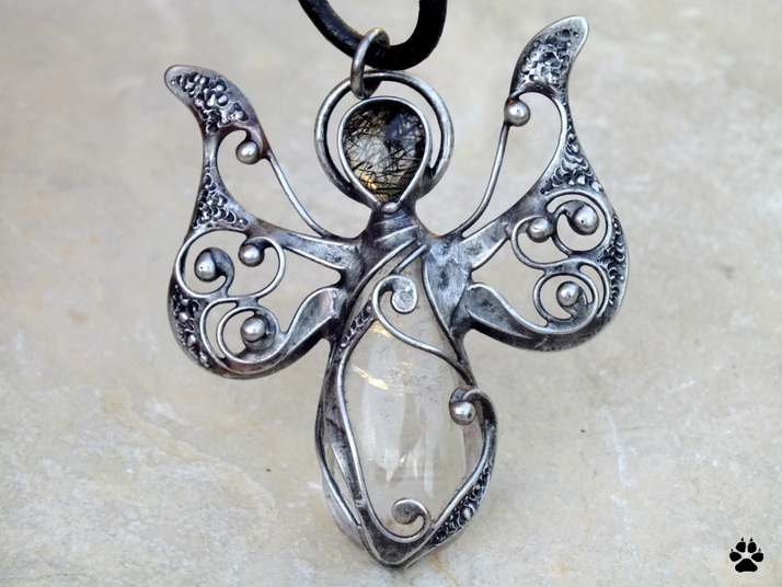 křišťál,rutilový křemen,cín,drát,kůže