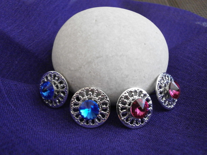 Náušnice Mandala - materiál Rhodium v kombinaci se Swarovski. Velikost 1,3cm. Možno vyrobit v různých barvách.