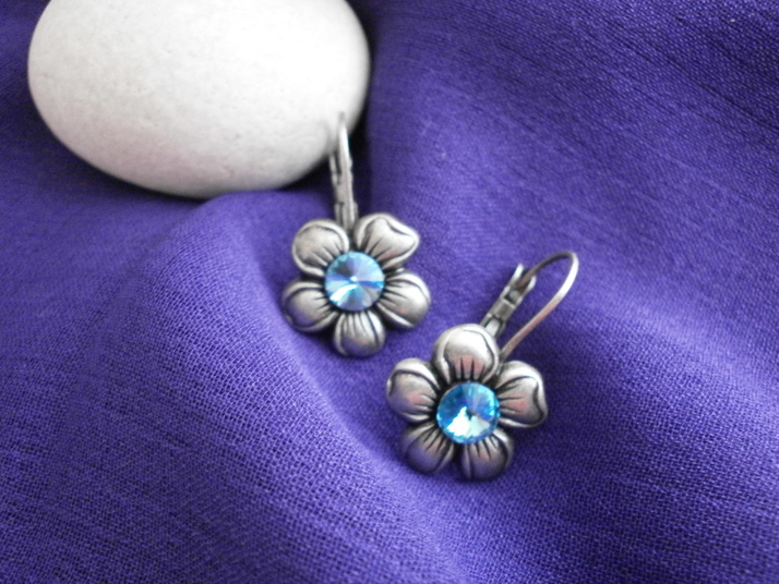 náušnice Květinka z francouzského starostříbra v kombinaci se Swarovski - barva Aquamarine .Provedení klapka . Možno vyrobit v různých barvách.