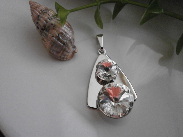 Přívěs trojúhelníkový - materiál Rhodium. Barva- Crystal. Velikost 3,2cm. Možno vyrobit v různých barvách.