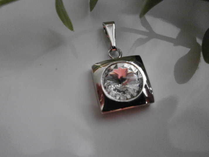Přívěs čtvereček- materiál Rhodium v kombinaci se Swarovski - barva Crystal. Velikost 1,2cm . Možno vyrobit v různých barvách.