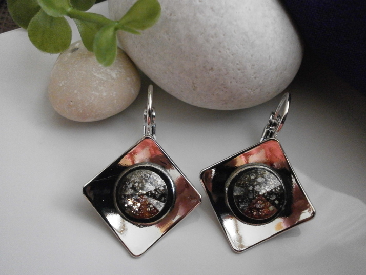Náušnice geometrické - materiál Rhodium v kombinaci se Swarovski - barva Crystal Gold Black. Možno vyrobit v různých barvách.