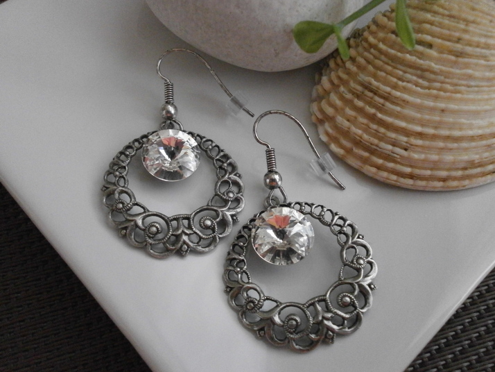 Náušnice Victory z francouzského starostříbra v kombinaci se Swarovski - barva Crystal. Velikost 4,5cm . Možno vyrobit v různých barvách.