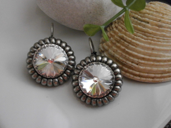Náušnice věnečkové z francouzského starostříbra v kombinaci se Swarovski - barva Crystal . Velikost 2,2cm . Možno vyrobit v různých barvách.