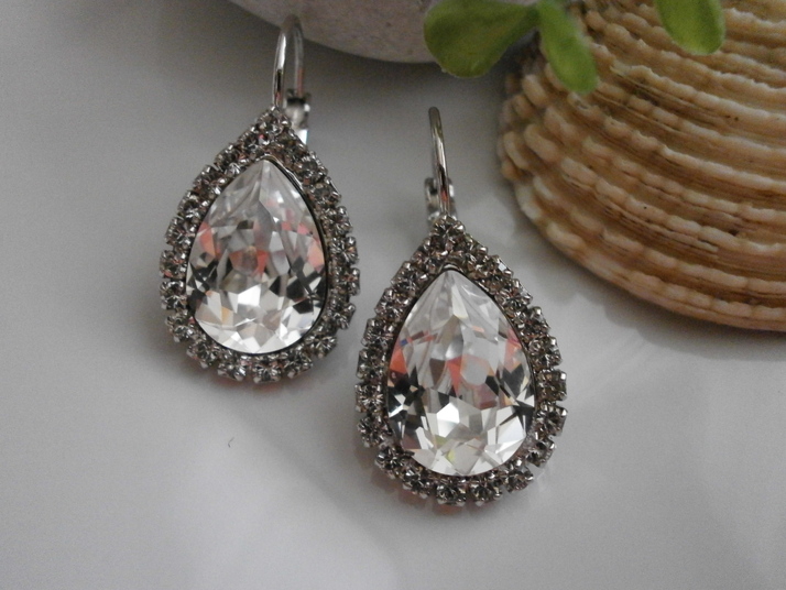 Náušnice slzička zdobená - materiál Rhodium v kombinaci se Swarovski-barva Crystal. Provedení klapka.