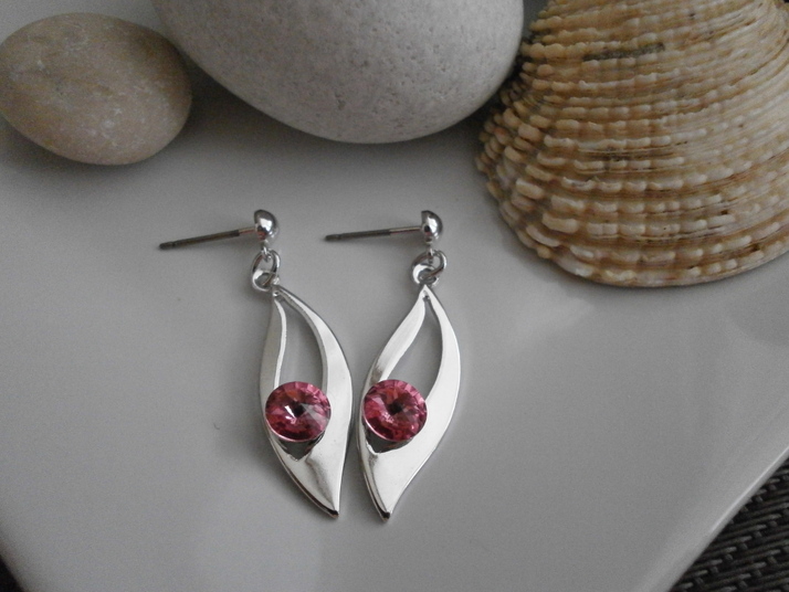 Náušnice Lístek- materiál Rhodium v kombinaci se Swarovski - barva Rose. Možno vyrobit v různých barvách.