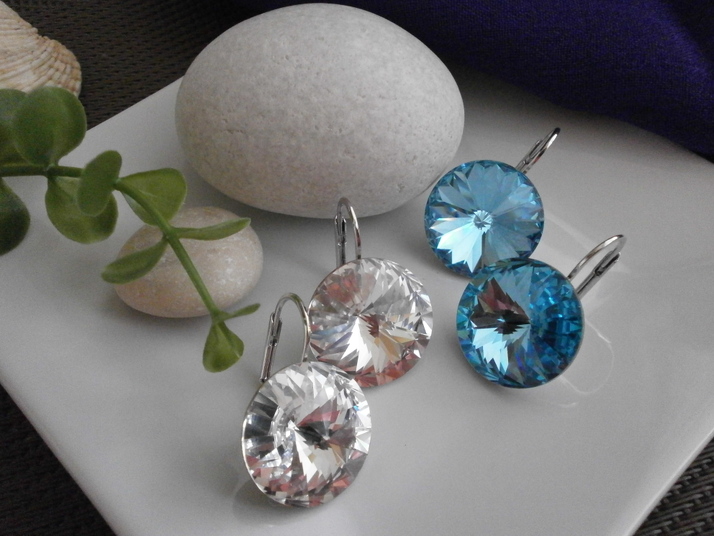 Velké náušnice z Rhodia v kombinaci se Swarovski - barva Aquamarine. Průměr 1,8cm. Možno vyrobit v různých barvách.