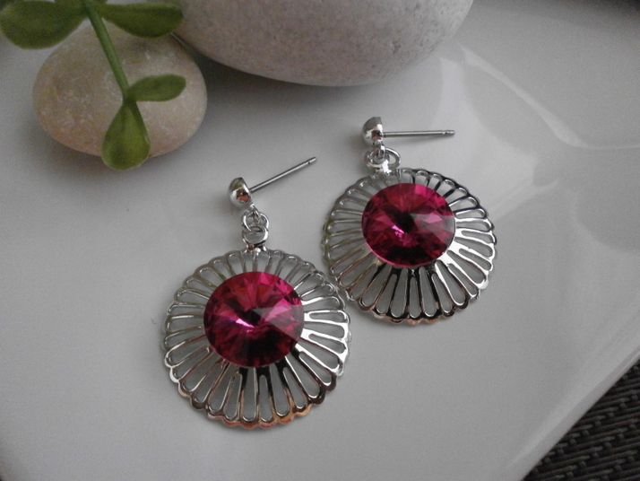 Náušnice Loukoťkové z materiálu rhodium v kombinaci se Swarovski - barva Fuchsia. Možno vyrobit v různých barvách.