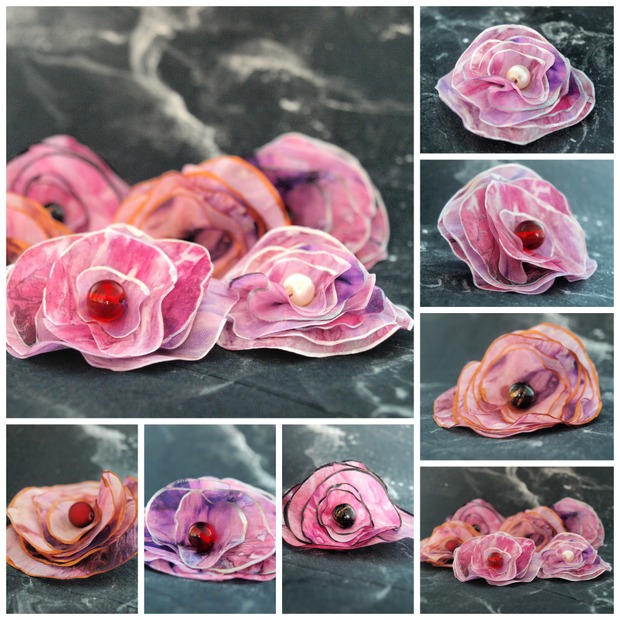 šest purpurových broží vyrobených jako dárek pro maminky nedonošeňátek