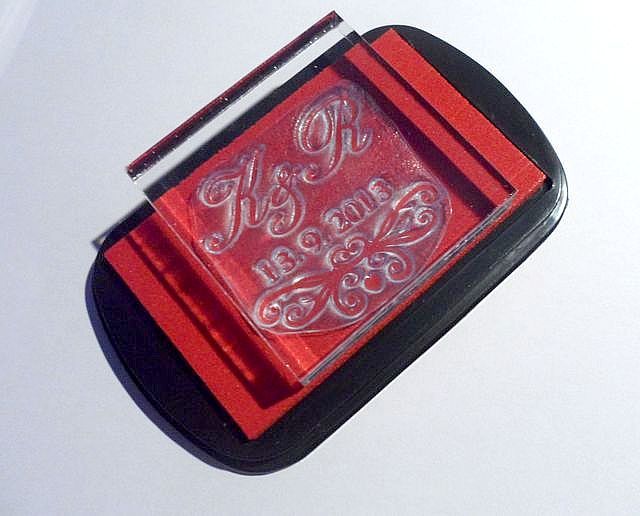 Razítko namočíme do barevného polštářku s barvou. Díky průhlednosti bločku i razítka vidíme, zda máme barvu nanesenu rovnoměrně.