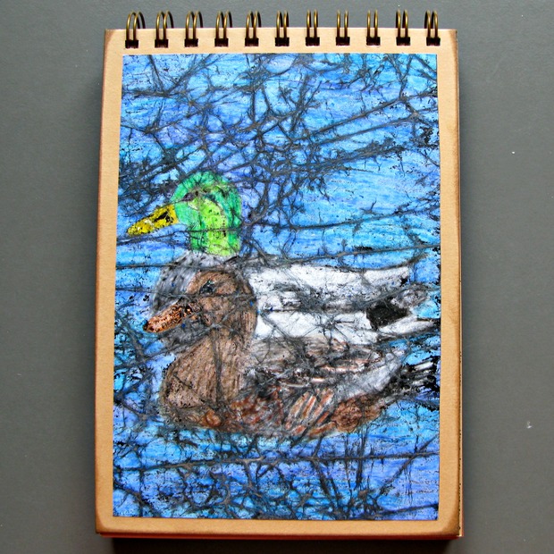 Až usušíme- ideálně mezi novinami, můžeme použít. Zde lepeno disperzním lepidlem na desky skicáku.