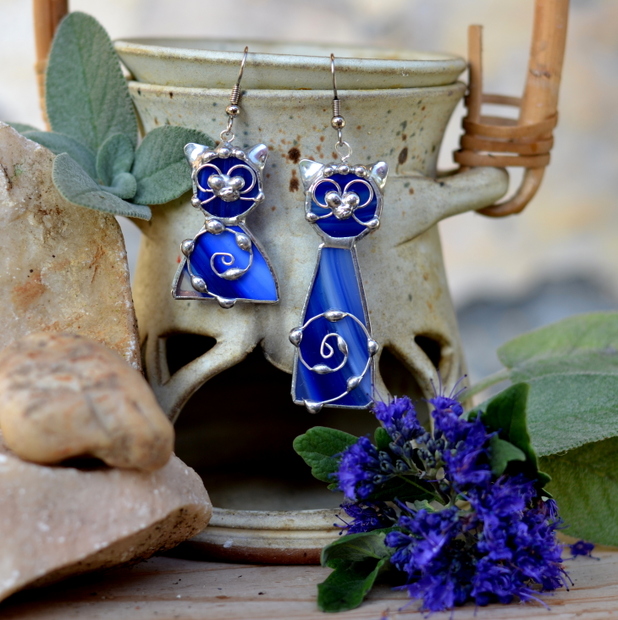 Modré kočičky-naušnice