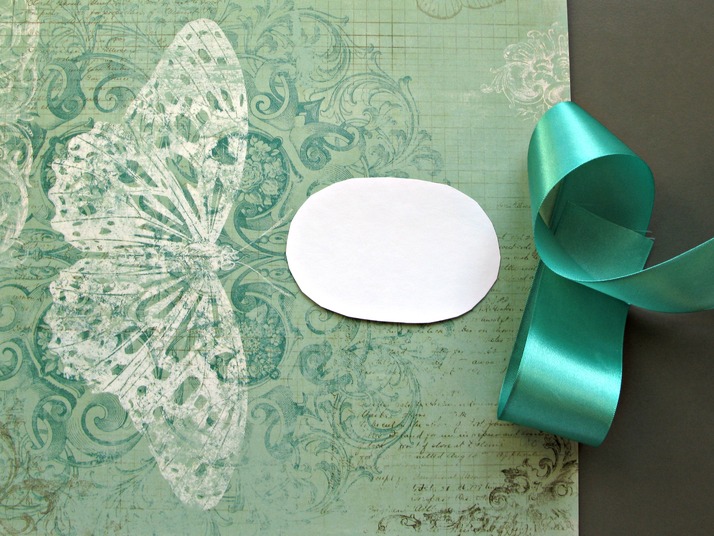 Oválek uprostřed se stuhou