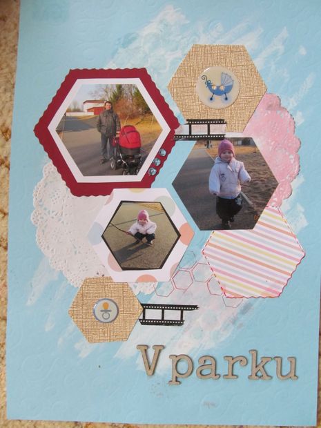 Zkouška nové techniky na scrapbookové stránce.
