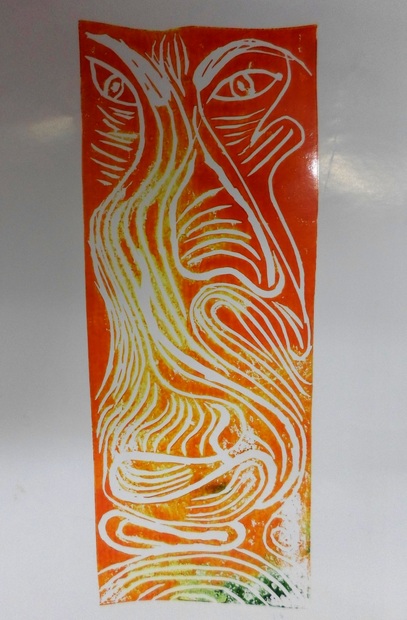 litografický tisk linorytiny na křídový karton, velikost tisku 15 x 35 cm (š-v), vhodné rámování je do Euroclipu s barevnou paspartou