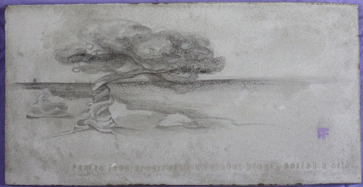 betonový obraz, dárek pro našeho finančního poradce, jehož slova jsou na obraze v podobě reliéfu. Ostatní je malované tuší.