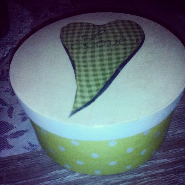 Dýhová kulatá krabička s puntíky a srdíčkem