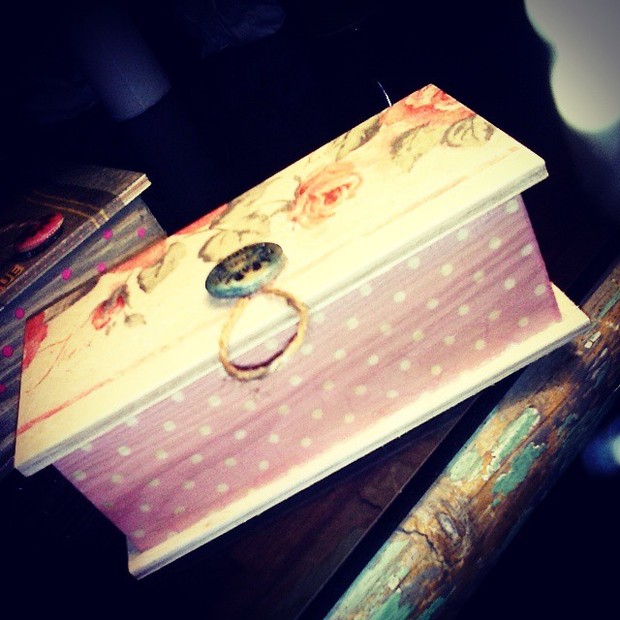 Dřevěná krabička o rozměrech 12x8 cm.