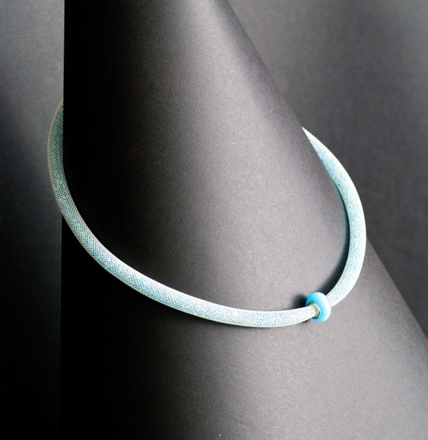 Elegantní náhrdelník v kombinaci světle modré a krémové barvy.Dutinka je vyplněna korálky, které se na světle třpytí.Vhodný do společnosti i běžné nošení.Délka cca 50cm.