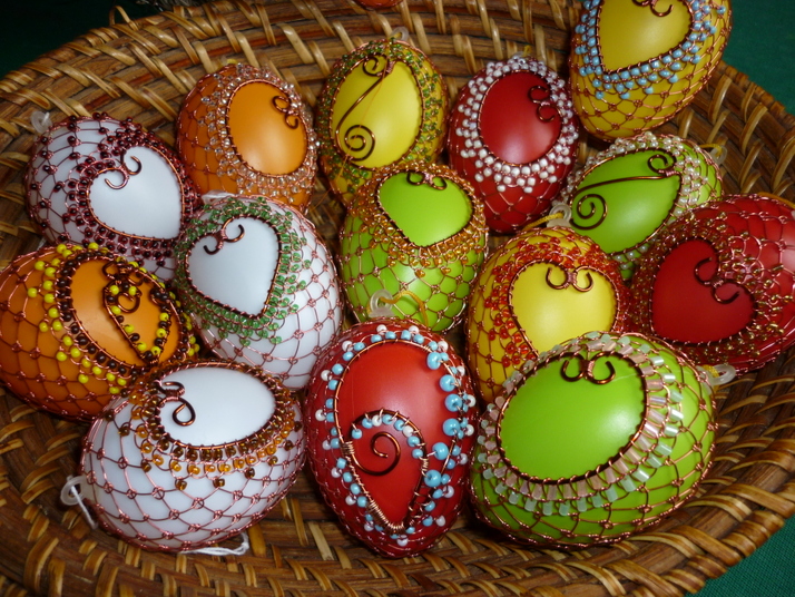 Drátkovaná velikonoční vajíčka v kombinaci s korálky.Cena za kus 60,-Kč.