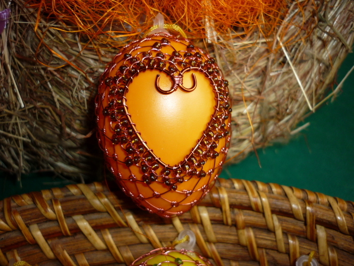 Drátkovaná velikonoční vajíčka v kombinaci s korálky.Cena za kus 60,-Kč