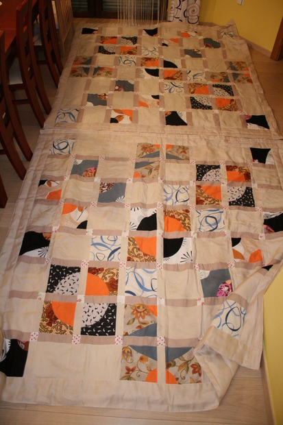 Kvalitní, teplá patchworková deka o rozměrech 2x4m. Jsou to dvě stejné deky 2x2m, které se k sobě dají přidělat suchým zipem, takže máte buď dva kusy 2x2m nebo jeden velký kus 2x4m. Ze zbytků látky mám ještě polštářek (válec). Cena deky 6.420,-Kč, ale při odběru do Vánoc dám slušnou slevu a polštář zdarma. Veškeré dotazy ráda zodpovím, příp. pošlu další fotky.