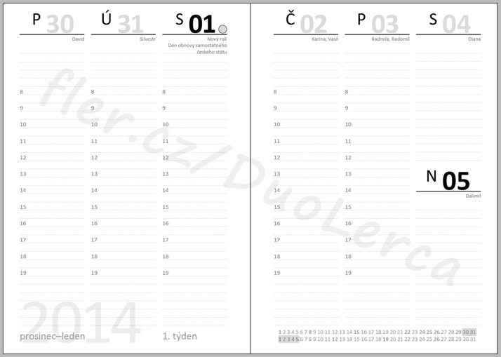 Náhled vnitřní strany - typ Calibri