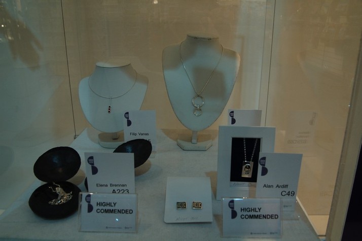 vystavené kusy z výběru 50ti nejlepších nových výrobků celého expa. vpravo vpředu výrobek renomovaného irského šperkaře Alana Ardifa, vpravo vzádu pak od taktéž velmi úspěšné tvůrkyně Martiny Hamilton.