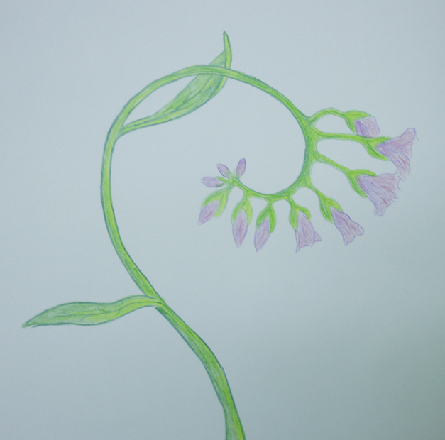 Můj první pokus. Vzdáleně inspirováno kresbou kostivalu v herbáři.