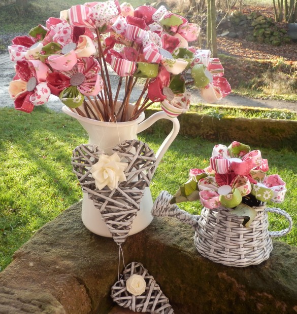 ručně šité látkové kytičky, vhodné jako dekorace domů či chalup, vhodné pro alergiky