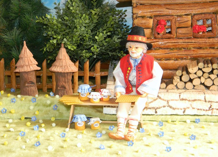 Valašský rok-Včelař. Loutka-panenka je vyrobená z moduritu, drátku a látky.