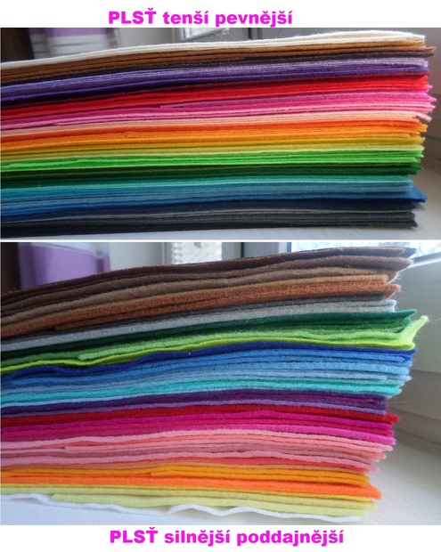 pevnější jsou vhodné jako aplikace nebo na ozdoby, brože, poddajnější používám na hračky pro děti, ať jsou hezky měkkoučké