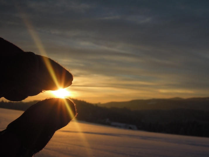 Během výletu na běžkách jsem se pokusil zachytit to malinké sluníčko do prstů, aby zůstalo o chvíli déle. Bohužel se to nepodařilo a měl jsem jen krátký okamžik na focení toho krásného divadla.