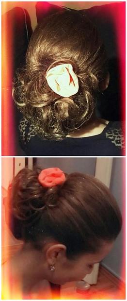 Látková květinka s korálkovým středem. Připevněné ke svírací sponce. Doplněk do drdolu na ples, ale i k běžnému nošení.