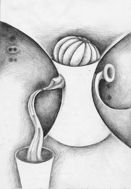 Kreslení na náhodný výběr slov - hyperbola, mandarinka, flétna a hůlku už jsem nestihla