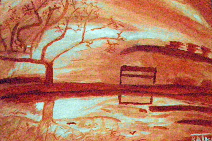 Lavička v západu slunce