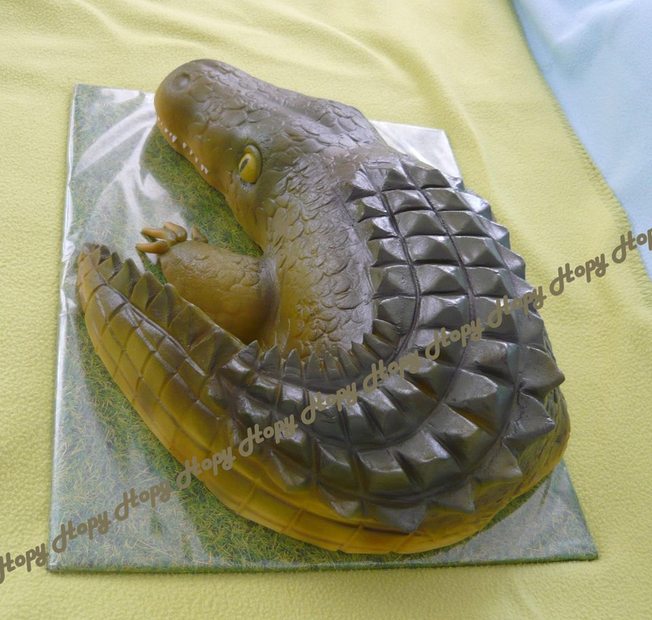 3D dort ve tvaru krokodýla potažený pravým marcipánem